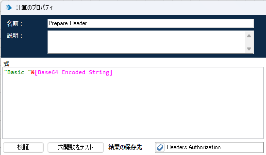 HeadersはAuthorizationの1行だけ。設定する値は「Basic Base64エンコードしたテキスト」です。