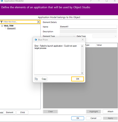 buenas! tengo la version 7.3.1 con la trial del learning y me esta apareciendo un error cada vez que clico en attach/launch del data modeller en objetos... se queda atascada y entonces tengo que finalizar la tarea desde el administrador de tareas porque se queda totalmente congelado el blue prism.