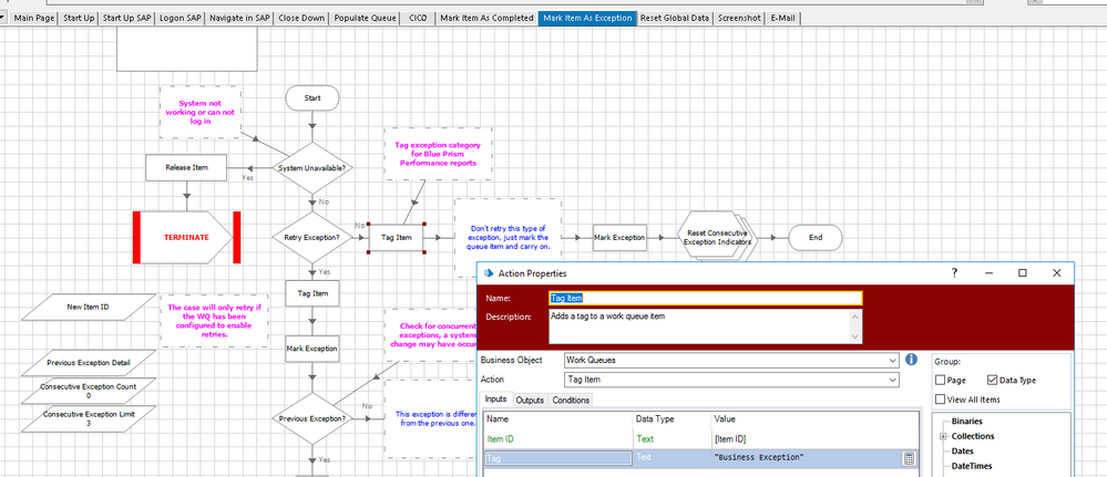 Bezüglich Tags, wir geben in den Fehlern manchmal eindeutige Werte mit, das wird aber im Standard Template bei den Mark as Exception automatisch im Standard getagt.