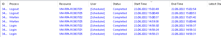 Das mit dem Pending, die landen dann wenn die nicht laufen im Activity Report, mit der Meldung war busy weil Pool beschäftigt. @blue prism Naja schön wäre es natürlich gewesen wenn man das im Control Room auch sieht und nicht im Activity Report.