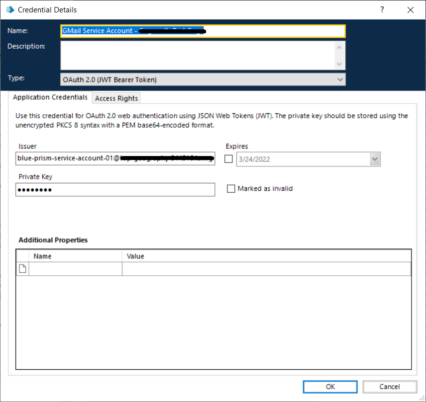 private_key) and use them to populate your Blue Prism Credential Manager entry.