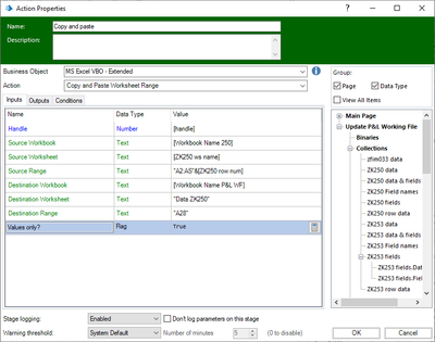 I think a code stage might be an overly complicated solution, the easiest thing to do would be to copy and paste the rows as values. If your formula has produced results and you want now only the values from the formulas then you can select all the rows you need and then copy and paste either into the same rows as they currently are into new cells and in this action select values for the paste option. example below