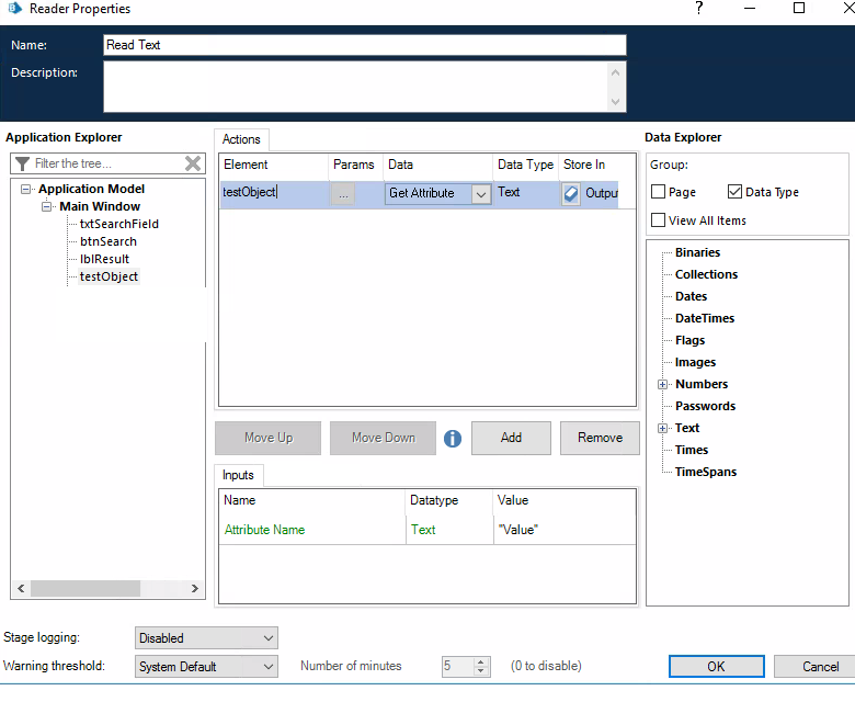 I'd like to get the text of an textfield. I've already tried to get it via 'Get text', but that did not work. When I spy the element, blueprism is able to read the text of the element in the property 'Web Value', which is in the application modeller. I'd like to access this 'Web Value'. When I use a read stage and the method 'Get Attribute', I can enter an Attribute name. 'Web Value' does not return the desired value. So how does 'Get Attribute' work?