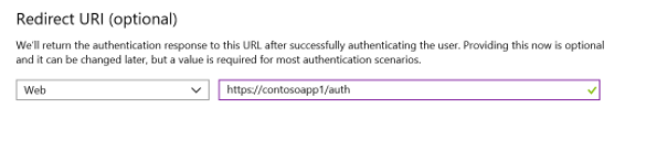 Question1 -->What type and value should be selected in Redirect URI (optional) settings: