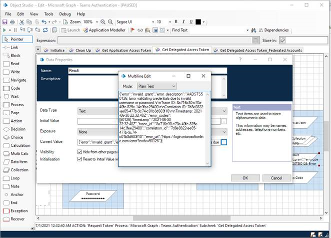 However, when we try to integrate this API with Blue Prism, resorting to the "Microsoft Graph API - Authentication" asset, we keep running into the following error message when requesting the Delegated Access Token:
