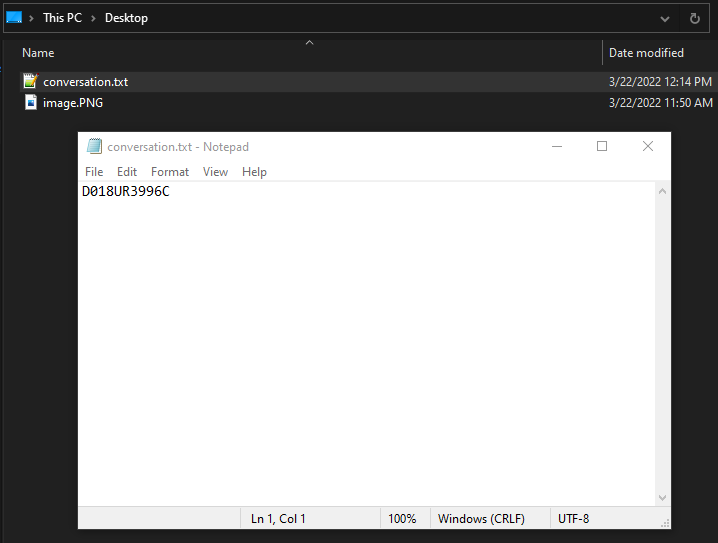 - In my case, I opened Notepad and created a new text file titled conversation.txt on my Desktop.