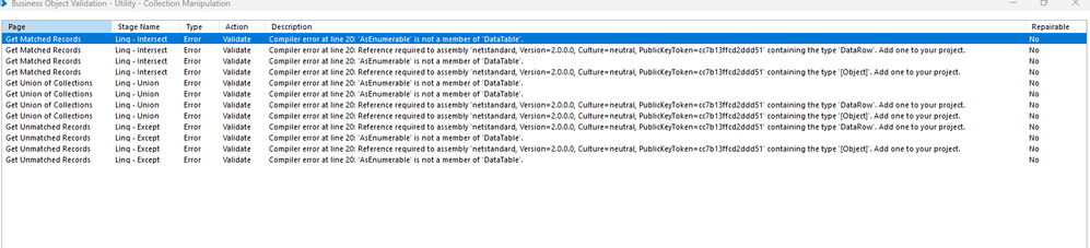 Hello @ewilson, I have a question about "Get Unmatched Records" action. What about the scenario when all the values from first collection exist in the second collection? I get this error in that scenario: "ERROR: Internal: Could not execute code stage because exception thrown by code stage: The source contains no DataRows."