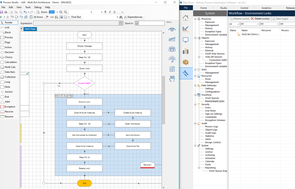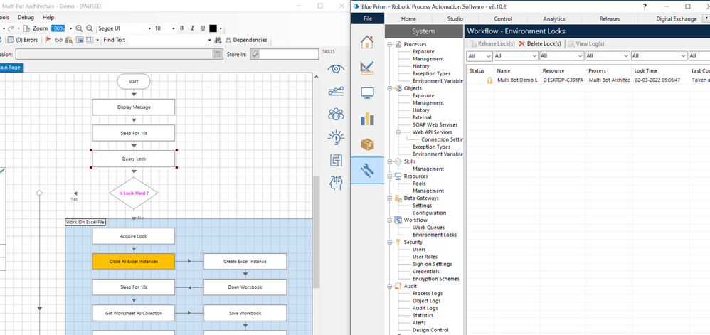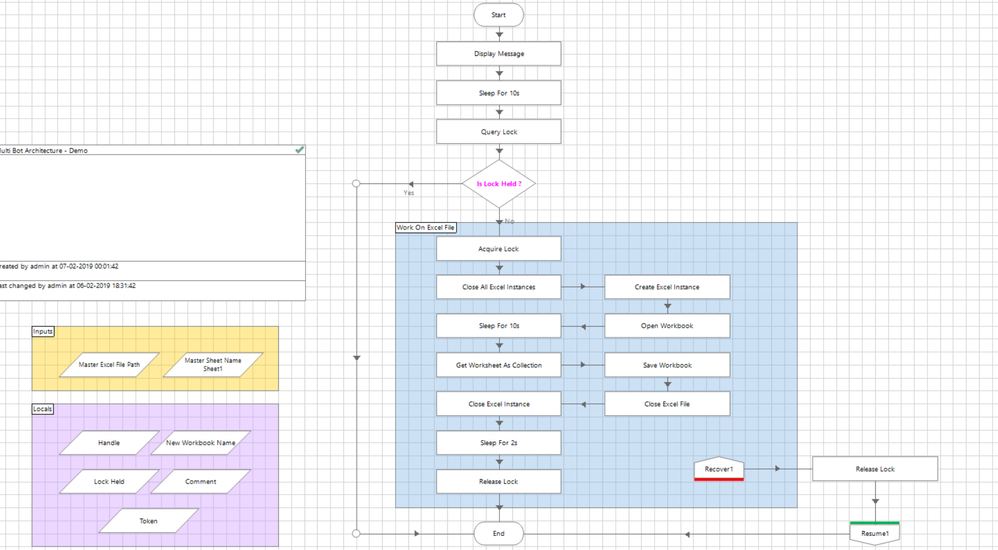 Below is a sample workflow, where we want to read an excel file only suing a single resource. So if this process is run across multiple resources, there will be a race among them which will determine who queries the lock first, the resource who wins this race will read the file while the others will skip this entire workflow.