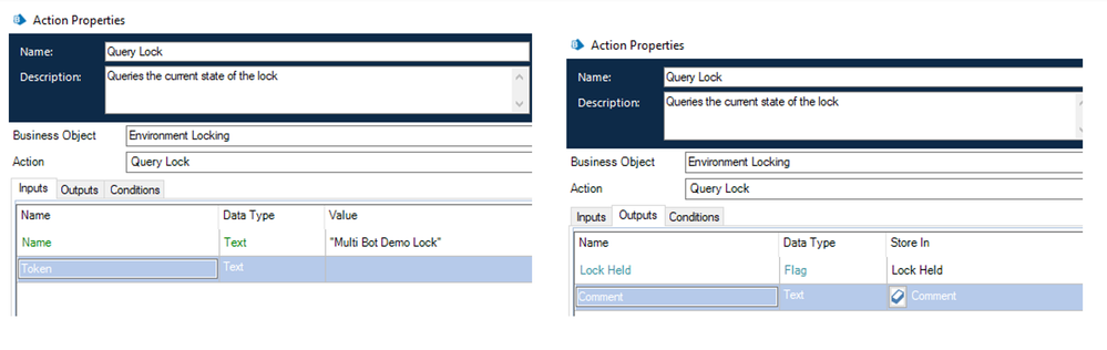 Now coming to it's working, we generally have three types of actions associated with Environment Locking which are: 'Acquire Lock', 'Query Lock' and 'Release Lock'. The way we can implement this concept is by first using the 'Query Lock' action where you provide the lock name which can be a custom name set by you and it will return a flag indicating if any token corresponding to that lock has been generated already or not as shown below. If we already know the randomly generated token text we can put that here though it is optional: