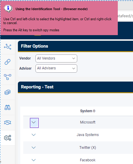 My issues is after maybe the 2nd or 3rd (random) it will no longer find browser elements.. then it might pick back up again on row 5/6... If I step into the object and open application Modeller, add a new element and click Identify, browser mode is first but highlights zero elements... as soon as I 'Alt' through the spying modes and get back to Browser Mode... the elements are all there. if I then cancel the spy and try to highlight the previous failed element, it highlights fine.