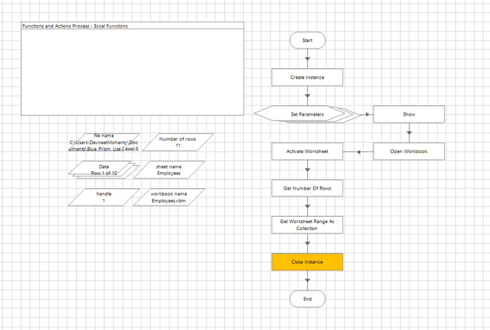 Function for MS Excel VBO - Extended - 2.3.3Once, you've imported this business object, you can create a sample workflow as shown below: