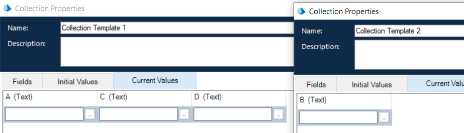 Split Collection' action in Collection Manipulation VBO such that once collection has the field A,C,D and another has field B so that we can split our input collection having four fields A,B,C and D into two separate collections one having just the field B and another having A,B and C. In my case I have two collections named, 'Collection Template 1' and Collection Template 2' as shown below: