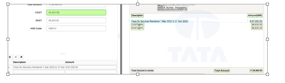 I am facing a problem while getting the data from a Tax invoice Document. The layout of invoice is similar for all documents.