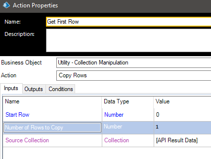 Using the Copy Rows action, you can pass start row and from there how many rows you wanna copy. So in the above example, it will keep only the first row and remove all others.