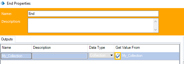 You can set collection as output parameter in object studio in required action. Later when object action will be referenced form process you can find same collection in output tab of action properties.