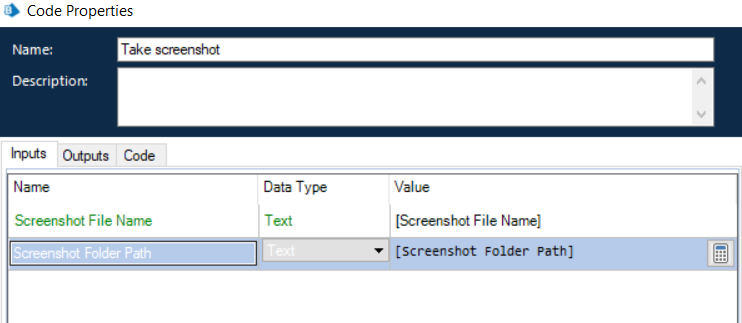 Add the code stage as shown above and use the below input parameters and code. No output parameter as such is required :