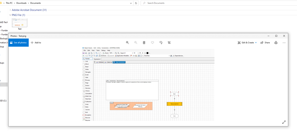 From the process studio, you can easily invoke this action whenever you are in the unhappy path from you 'Recover' and 'Resume' stage and once the screenshot has been saved at the given file path, you can use either 'SMTP/POP3' or Outlook VBO to send an email with this screenshot as an attachment