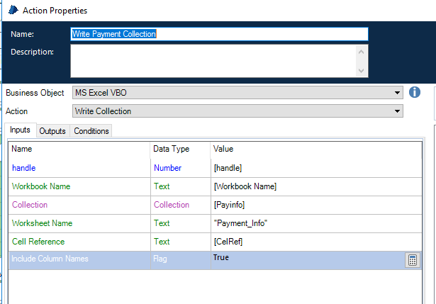 6) use MS Excel VBO - Write Collection