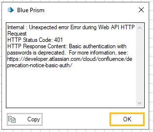I recently started setting up the JIRA API skill, and have followed the User Guide that comes with it and gone through each step. I have set up the API in the 'Web API Services' section of the BP system settings. I have set up a credential and obtained an API Key from Atlassian. However whenever I try to run it in a process, I keep receiving an error message, "