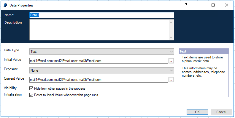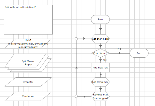The idea of this is to make a loop over the text that contains all the mails. This loops ends when the Char Index of ";" inside the original text is 0 (means that no more mails in the text)
