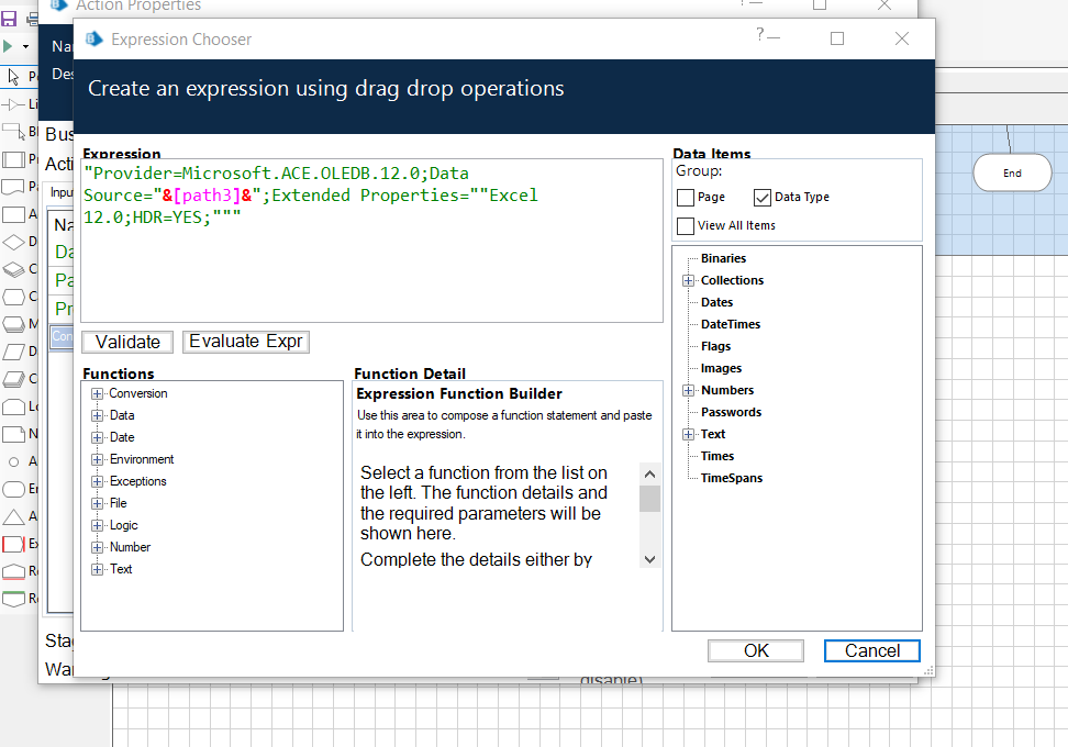 NOTE: I have done this kind of an implementation in other RPA tools as each OLEDB operation can be confined within multiple session variables, but in Blue Prism since you don't have a proper data item to hold the connection session data out of an action in any data type other than the Blue Prism native variable types (Text, Number, Flag etc.), I think that is one of the major issues to why you can't create a custom parameterized object for the same to get that session variable out like that. Perhaps there can be someway which I am missing but at this point creating a code to do same will not make it ideally reusable which I don't like while creating objects like that where the operations are confined to a particular use case only. Hence, I wont be going via the code way to show you that.