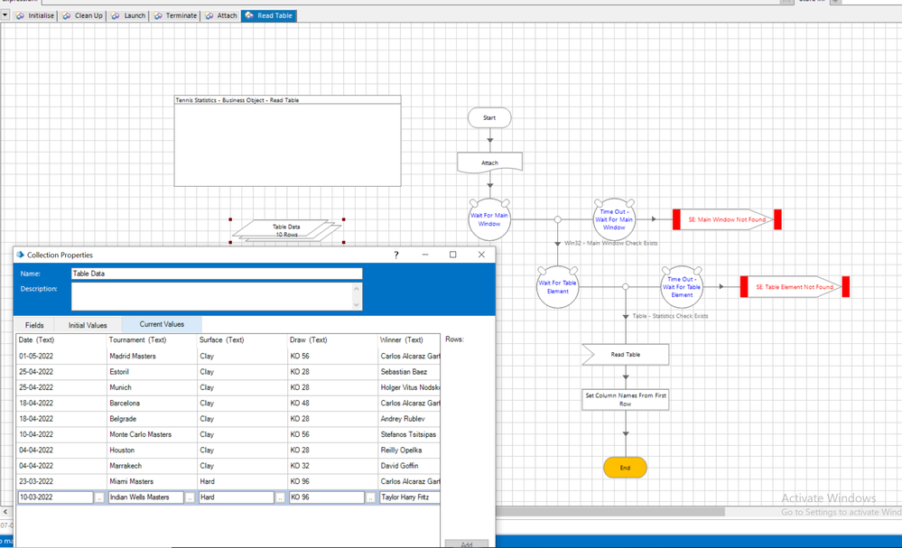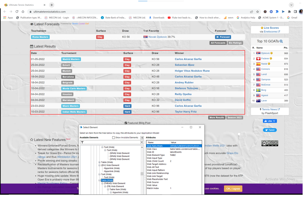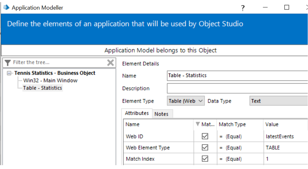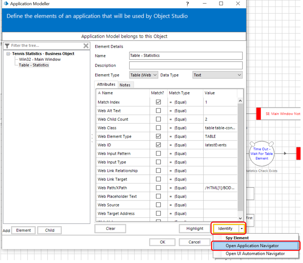 Now in the application navigator, you need to search for the table element once it loads up. As you can see, I was able to get the below spied element: