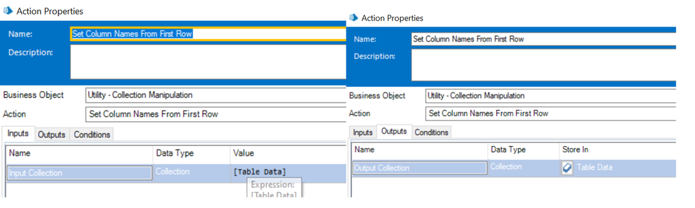 Utility - Collection Manipulation' since the table consists of headers as well as a part of a separate row as shown in the above screenshot which we can set as header row using this action.