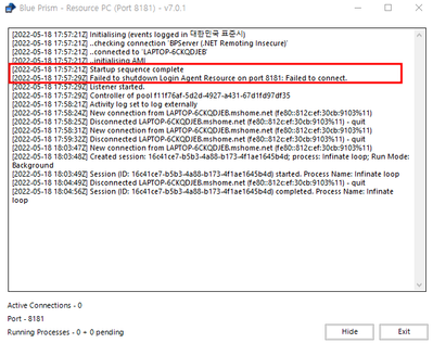 Hello Everyone,Recently we installed Blue Prism version 7.1.The logout process is triggered properly but the Runtime resource will be always in the "Idel stage" & it will not signout or logout. Also, I am not able to find the login agent config file....