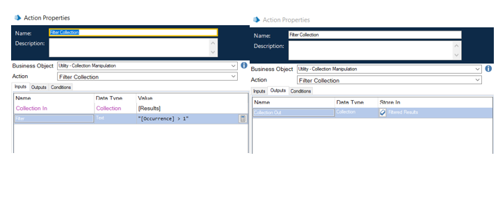 Now we can use the 'Filter Collection' action from 'Utility - Collection Manipulation' and use the following filter query: