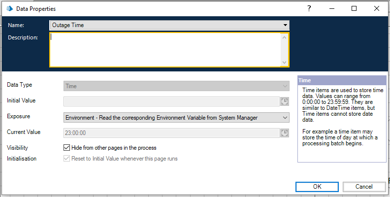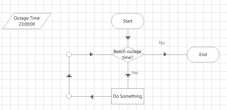 As you can see, the decision stage evaluate when the localtime is lower than the outage time that you defined. When you reach this time, the process will finish.
