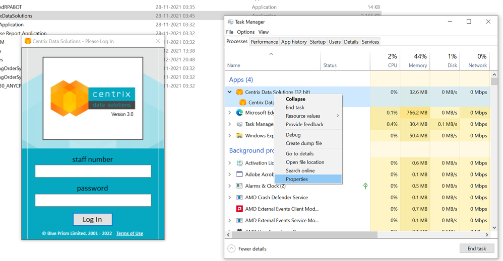 Usually this error is caused because of incorrect parameters only. You might check if you are including the '.exe' extension with the process name. If you are using the extension, the process name won't be recognized. In order to get the correct process name, once you have launched the application you can go to the Task Manager and from there you will be able to view the process name. In the below example, I am showing the steps with Training Order Application.